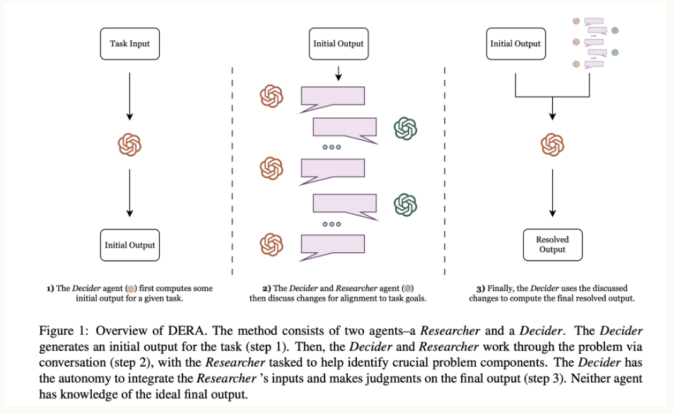 DERA, developed by my former team at Curai Health for their specific healthcare approach, defines different agents that, in the context of a dialog, take different roles. In the case of high stakes situations like a medical conversation, it pays off to define a set of “Researchers” and a “Decider”. The main difference here is that the Researchers operate in parallel vs. the Reflexion Actors that operate sequentially only if the Evaluator decides.